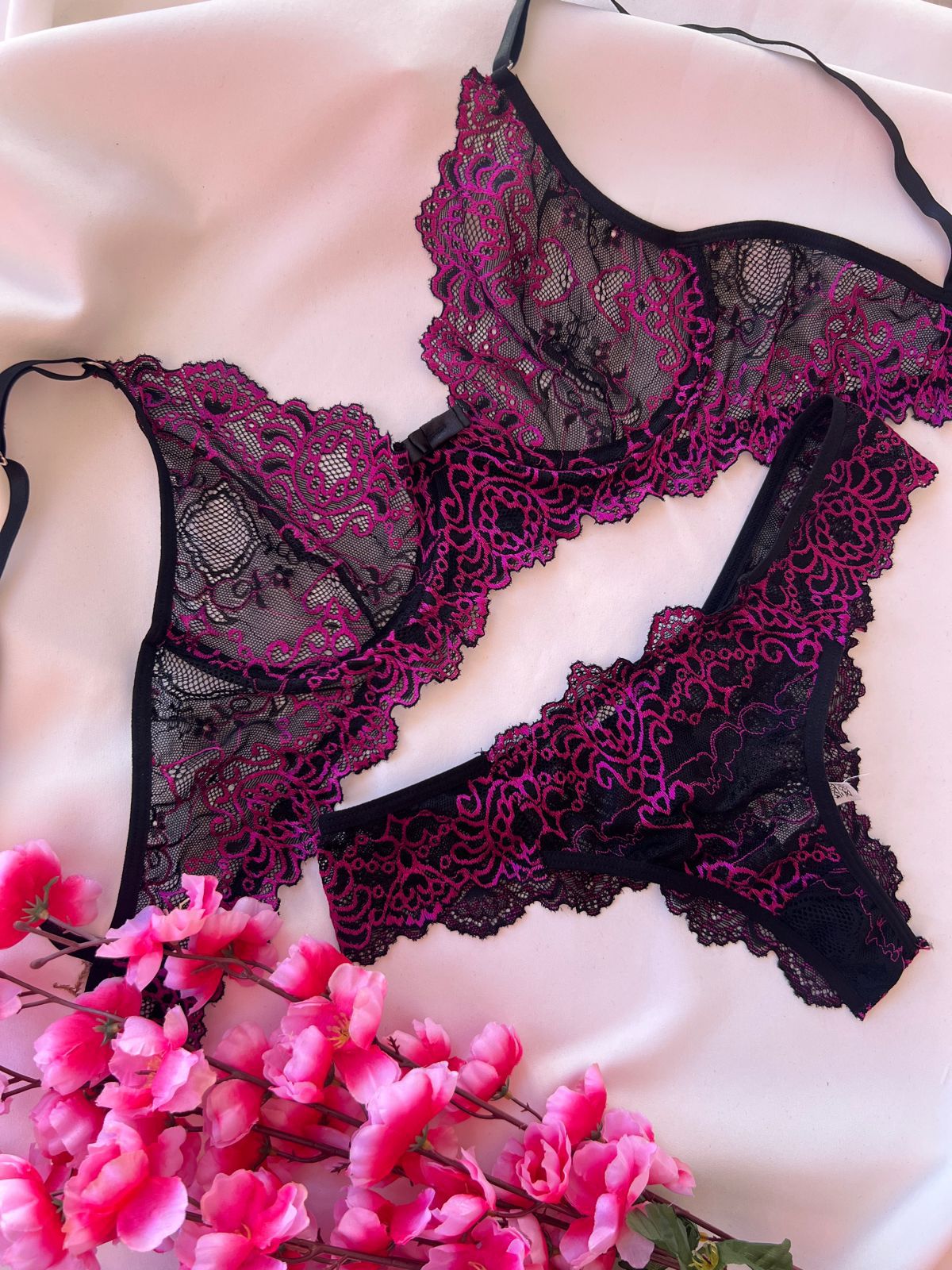• Conjunto de calcinha e sutiã em renda delicada