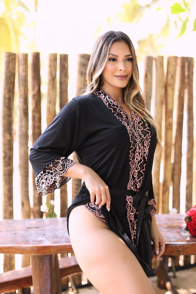 O modelo tamanho único foi desenvolvido para se adaptar ao corpo com conforto, proporcionando ajuste suave e elegante. Ideal para momentos íntimos, ocasiões especiais ou para quem busca comprar robe feminino em tule e renda com qualidade e estilo.